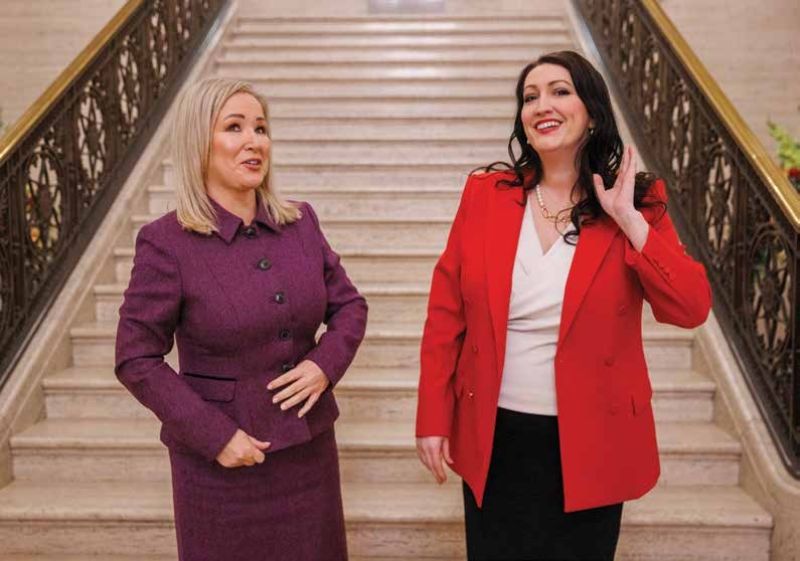 First Minister Michelle O’Neill and Deputy First Minister Emma Little-Pengelly share a candid moment before a portrait at Stormont.