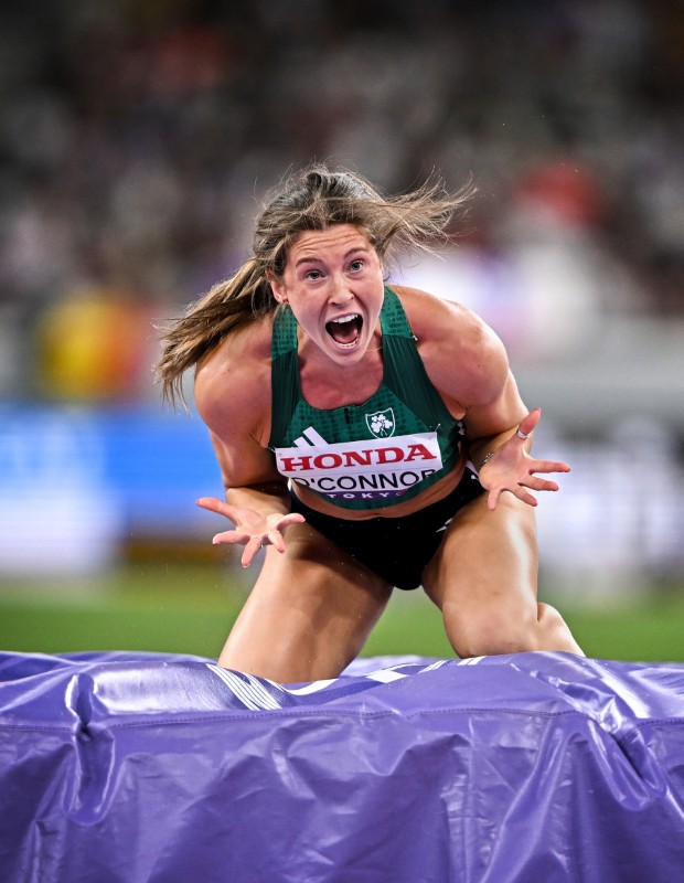 Kate O’Connor of Ireland celebrates a clearance of 1.86m, a personal best, in the Women’s Heptathlon High Jump event during day seven of the World Athletics Championships Tokyo 2025 at Japan National Stadium in Tokyo, Japan.